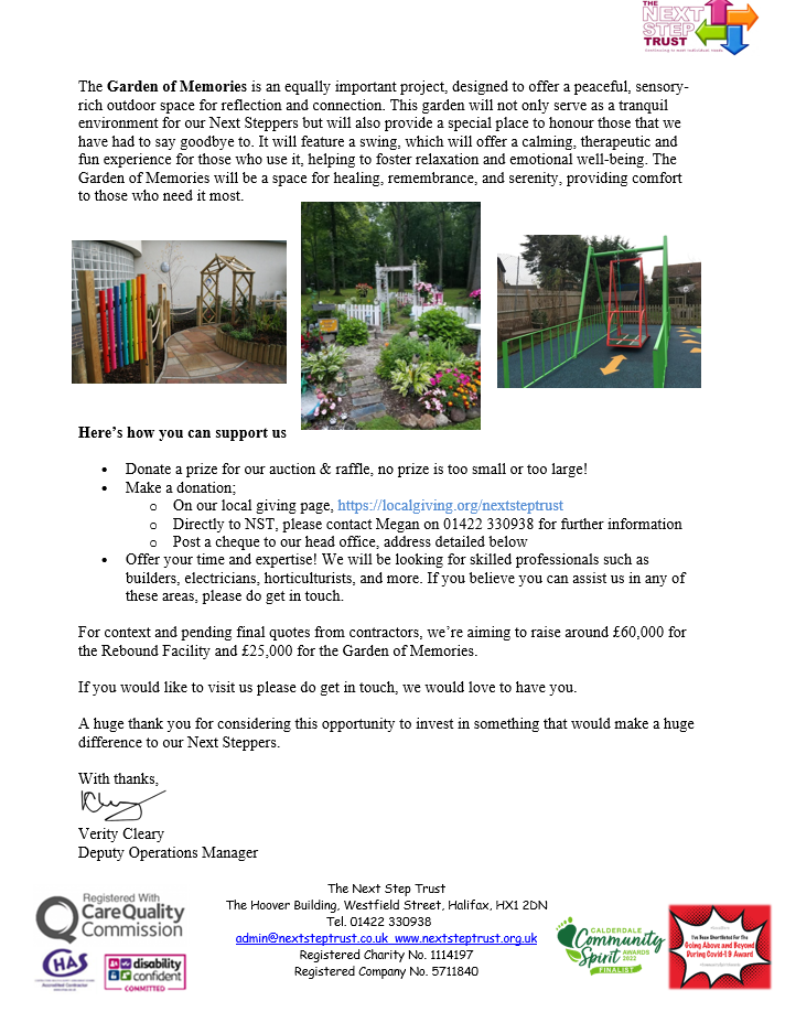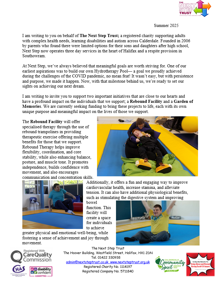 As a voluntary organisation we depend on fundraising to ensure we can facilitate quality activities and therapies for the well-being of the Next Steppers.