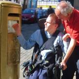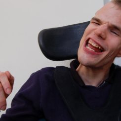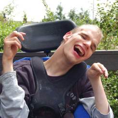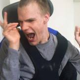 Hi, my name is Kyle. I enjoy coming to Next Step five days a week. I have lots of friends here and like to make everyone laugh. I rely on my support workers a lot as I am blind and use a wheelchair to get around. I like talking about where I want to go and what things I like doing. I help out every day with the hoovering at Next Step which I really enjoy!