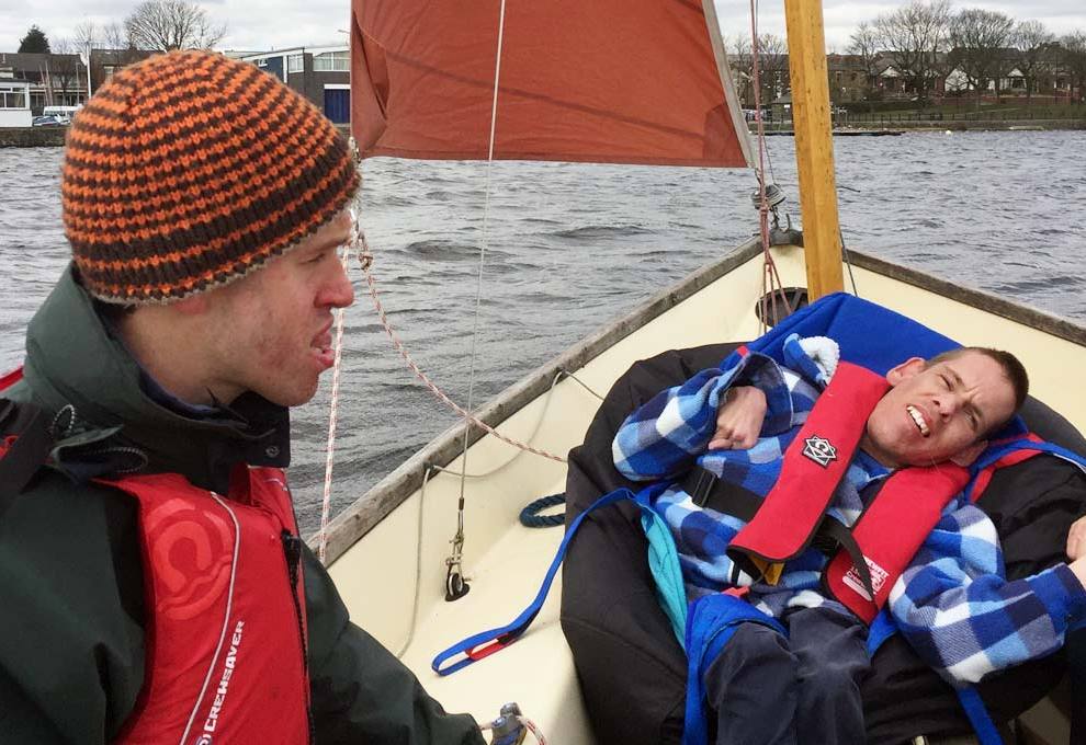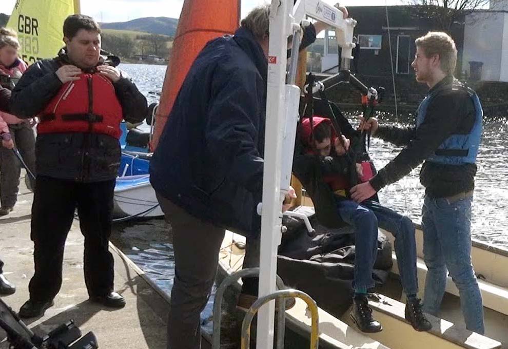 The boat is a two person, specifically adapted Hansa 303 Dinghy. Next Steppers had the honour of being the first to use the new boat and were accompanied by their own support workers to take the boat out independently whilst a safety boat was close by giving instructions as they sailed.